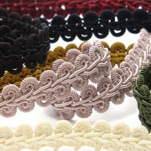 This is the Trimming Braid from SHINDO (S.I.C.). The braid is characterized by the good physical properties of polyester and a dull-tone, matte atmosphere. It is often used for edging of outerwear such as women's jackets. It is also recommended to be used as cartonnage and accessory cords for small and miscellaneous items. Three meter-cut products are sold as samples to check the actual product or for prototypes. Please be sure to check the actual product with a three meter-cut product before purchasing in a roll.