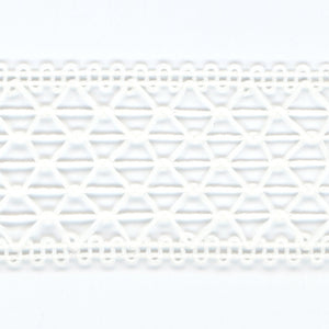 This is the Crochet Lace Tape from SHINDO (S.I.C.). Crochet lace-like tape with a glossy, net-like design. It is recommended as a clothing material for interiors, small items, and miscellaneous uses. Three meter-cut products are sold as samples to check the actual product or for prototypes. Please be sure to check the actual product with a three meter-cut product before purchasing in a roll.