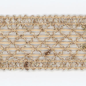 This is the Lame Crochet Lace from SHINDO (S.I.C.). Crochet lace-like tape with glittering glitter. It is recommended as a clothing material for interiors, small items, and miscellaneous uses. Three meter-cut products are sold as samples to check the actual product or for prototypes. Please be sure to check the actual product with a three meter-cut product before purchasing in a roll.