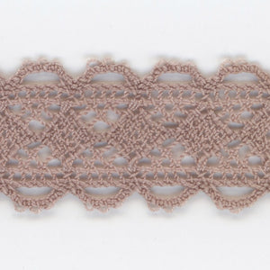 This is the Torchon Lace from SHINDO (S.I.C.). Made of 100% natural cotton fiber, this lace has a rustic, warm and natural taste with a diamond pattern and picot ends. The use of fine count yarns gives it a light and delicate texture, making it a recommended material for children's clothing and general merchandise applications. In order to minimize shrinkage during washing and dyeing, all colors, including unbleached ones, have been treated to prevent shrinkage, so if you've ever had a lace sewn to a fabric that has shrunk after washing, don't worry. Three meter-cut products are sold as samples to check the actual product or for prototypes. Please be sure to check the actual product with a three meter-cut product before purchasing in a roll.