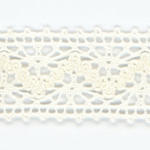 This is the Torchon Lace from SHINDO (S.I.C.). This lace is made of 100% natural fiber cotton, with a rustic, warm, natural taste and picot at both ends. The use of fine count yarns gives it a light and delicate texture, making it a recommended material for children's clothing and general merchandise applications. In order to minimize shrinkage during washing and dyeing, all colors, including unbleached ones, have been treated to prevent shrinkage, so if you've ever had a lace sewn to a fabric that has shrunk after washing, don't worry. Three meter-cut products are sold as samples to check the actual product or for prototypes. Please be sure to check the actual product with a three meter-cut product before purchasing in a roll.