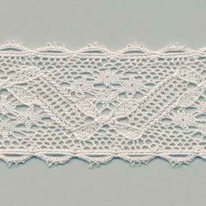 This is the Torchon Lace from SHINDO (S.I.C.). Made of 100% natural cotton fiber, this lace has a rustic, warm, natural taste with zig-zag lines and ribbon motifs. The use of fine count yarns gives it a light and delicate texture, making it a recommended material for children's clothing and general merchandise applications. In order to minimize shrinkage during washing and dyeing, all colors, including unbleached ones, have been treated to prevent shrinkage, so if you've ever had a lace sewn to a fabric that has shrunk after washing, don't worry. Three meter-cut products are sold as samples to check the actual product or for prototypes. Please be sure to check the actual product with a three meter-cut product before purchasing in a roll.