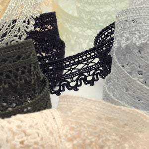 • This is the Torchon Lace from SHINDO (S.I.C.). This lace is made of 100% natural cotton fiber, with a rustic, warm, natural taste and a picot line on one side. The use of fine count yarns gives it a light and delicate texture, making it a recommended material for children's clothing and general merchandise applications. In order to minimize shrinkage during washing and dyeing, all colors, including unbleached ones, have been treated to prevent shrinkage, so if you've ever had a lace sewn to a fabric that has shrunk after washing, don't worry. Three meter-cut products are sold as samples to check the actual product or for prototypes. Please be sure to check the actual product with a three meter-cut product before purchasing in a roll.