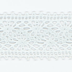 This is the Torchon Lace from SHINDO (S.I.C.). Made of 100% natural fiber cotton, the lace is a floral design with a rustic and warm natural taste. The use of fine count yarns gives it a light and delicate texture, making it a recommended material for children's clothing and general merchandise applications. In order to minimize shrinkage during washing and dyeing, all colors, including unbleached ones, have been treated to prevent shrinkage, so if you've ever had a lace sewn to a fabric that has shrunk after washing, don't worry. Three meter-cut products are sold as samples to check the actual product or for prototypes. Please be sure to check the actual product with a three meter-cut product before purchasing in a roll.