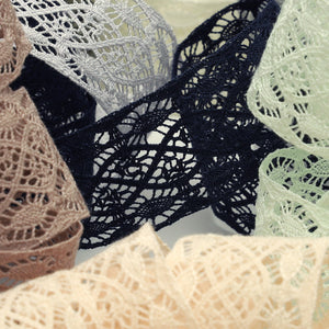 • This is the Torchon Lace from SHINDO (S.I.C.). Made of 100% natural fiber cotton, the lace is characterized by a cross-line design with a rustic, warm and natural taste. The use of fine count yarns gives it a light and delicate texture, making it a recommended material for children's clothing and general merchandise applications. In order to minimize shrinkage during washing and dyeing, all colors, including unbleached ones, have been treated to prevent shrinkage, so if you've ever had a lace sewn to a fabric that has shrunk after washing, don't worry. Three meter-cut products are sold as samples to check the actual product or for prototypes. Please be sure to check the actual product with a three meter-cut product before purchasing in a roll.