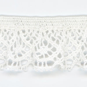 This is the Stretch Torchon Lace from SHINDO (S.I.C.). Stretchy ruffled lace, using fine thread, has a light and delicate texture. Recommended material for children's clothing and general merchandise applications. In order to minimize shrinkage during washing and dyeing, all colors, including unbleached ones, have been treated to prevent shrinkage, so if you've ever had a lace sewn to a fabric that has shrunk after washing, don't worry. Three meter-cut products are sold as samples to check the actual product or for prototypes. Please be sure to check the actual product with a three meter-cut product before purchasing in a roll.