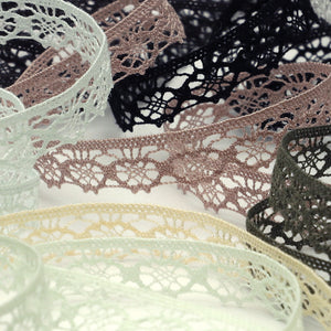 • This is the Torchon Lace from SHINDO (S.I.C.). Made of 100% natural fibers of cotton, the lace is rustic and warm, with a natural, Japanese taste. The use of fine count yarns gives it a light and delicate texture, making it a recommended material for children's clothing and general merchandise applications. In order to minimize shrinkage during washing and dyeing, all colors, including unbleached ones, have been treated to prevent shrinkage, so if you've ever had a lace sewn to a fabric that has shrunk after washing, don't worry. Three meter-cut products are sold as samples to check the actual product or for prototypes. Please be sure to check the actual product with a three meter-cut product before purchasing in a roll.