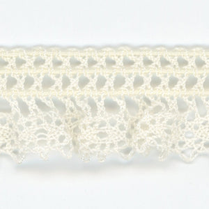 This is the Stretch Torchon Lace from SHINDO (S.I.C.). It is a small, ruffled lace with elasticity, using fine thread, and has a light and delicate texture. Recommended material for children's clothing and general merchandise applications. In order to minimize shrinkage during washing and dyeing, all colors, including unbleached ones, have been treated to prevent shrinkage, so if you've ever had a lace sewn to a fabric that has shrunk after washing, don't worry. Three meter-cut products are sold as samples to check the actual product or for prototypes. Please be sure to check the actual product with a three meter-cut product before purchasing in a roll.