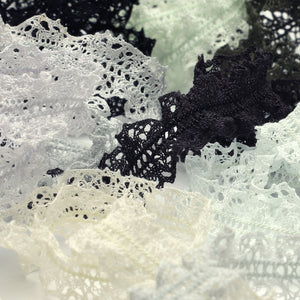 • This is the Stretch Torchon Lace from SHINDO (S.I.C.). The lace with a simple design of elastic bilateral ruffles, using fine thread, has a light and delicate texture. Recommended material for children's clothing and general merchandise applications. In order to minimize shrinkage during washing and dyeing, all colors, including unbleached ones, have been treated to prevent shrinkage, so if you've ever had a lace sewn to a fabric that has shrunk after washing, don't worry. Three meter-cut products are sold as samples to check the actual product or for prototypes. Please be sure to check the actual product with a three meter-cut product before purchasing in a roll.