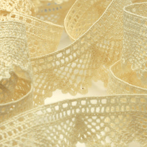 This is the Organic Cotton Torchon Lace from SHINDO (S.I.C.). This lace (C/#00 is undyed) is made from cotton grown in compliance with strict standards on farms that meet the standards for organic produce and other production methods, such as not using harmful pesticides and fertilizers for at least 2-3 years. We recommend these products for use in clothing, accessories, and general merchandise. Three meter-cut products are sold as samples to check the actual product or for prototypes. Please be sure to check the actual product with a three meter-cut product before purchasing in a roll.