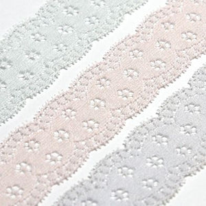 • This is the Leavers Trimming Lace from SHINDO (S.I.C.). Characterized by a dense and fine floral pattern, leavers lace loom is a rare technique that requires a high level of technology to produce due to the large number of yarns used and the complex structure. It is recommended for women's clothing, dance costumes, interior design and other miscellaneous applications. In order to minimize shrinkage during washing and dyeing, all colors, including unbleached ones, have been treated to prevent shrinkage, so if you've ever had a lace sewn to a fabric that has shrunk after washing, don't worry. Three meter-cut products are sold as samples to check the actual product or for prototypes. Please be sure to check the actual product with a three meter-cut product before purchasing in a roll.