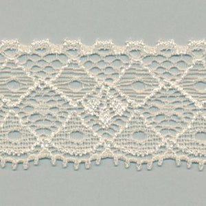 This is the Stretch Trimming Lace from SHINDO (S.I.C.). Lace with an elastic geometric pattern woven on a Russell loom, complex and delicate patterns, but also thin and flat. It is recommended for casual clothing, dance costumes, underwear, children's clothing, and interior accessories. In order to minimize shrinkage during washing and dyeing, all colors, including unbleached ones, have been treated to prevent shrinkage, so if you've ever had a lace sewn to a fabric that has shrunk after washing, don't worry. Three meter-cut products are sold as samples to check the actual product or for prototypes. Please be sure to check the actual product with a three meter-cut product before purchasing in a roll.