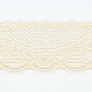 This is the Stretch Trimming Lace from SHINDO (S.I.C.). Lace with an elastic archline pattern woven on a Russell loom, complex and delicate patterns, but also thin and flat. It is recommended for casual clothing, dance costumes, underwear, children's clothing, and interior accessories. In order to minimize shrinkage during washing and dyeing, all colors, including unbleached ones, have been treated to prevent shrinkage, so if you've ever had a lace sewn to a fabric that has shrunk after washing, don't worry. Three meter-cut products are sold as samples to check the actual product or for prototypes. Please be sure to check the actual product with a three meter-cut product before purchasing in a roll.