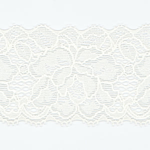 This is the Stretch Trimming Lace from SHINDO (S.I.C.). Lace with an elastic floral pattern, woven on a Russell loom, is also characterized by thin and flat, even in complex and delicate patterns. It is recommended for casual clothing, dance costumes, underwear, children's clothing, and interior accessories. In order to minimize shrinkage during washing and dyeing, all colors, including unbleached ones, have been treated to prevent shrinkage, so if you've ever had a lace sewn to a fabric that has shrunk after washing, don't worry. Three meter-cut products are sold as samples to check the actual product or for prototypes. Please be sure to check the actual product with a three meter-cut product before purchasing in a roll.