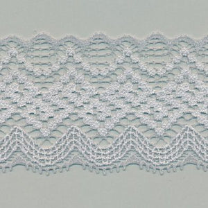 • This is the Stretch Trimming Lace from SHINDO (S.I.C.). Lace with an elastic geometric pattern woven on a Russell loom, complex and delicate patterns, but also thin and flat. It is recommended for casual clothing, dance costumes, underwear, children's clothing, and interior accessories. In order to minimize shrinkage during washing and dyeing, all colors, including unbleached ones, have been treated to prevent shrinkage, so if you've ever had a lace sewn to a fabric that has shrunk after washing, don't worry. Three meter-cut products are sold as samples to check the actual product or for prototypes. Please be sure to check the actual product with a three meter-cut product before purchasing in a roll.