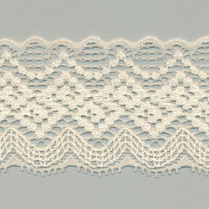 • This is the Stretch Trimming Lace from SHINDO (S.I.C.). Lace with an elastic geometric pattern woven on a Russell loom, complex and delicate patterns, but also thin and flat. It is recommended for casual clothing, dance costumes, underwear, children's clothing, and interior accessories. In order to minimize shrinkage during washing and dyeing, all colors, including unbleached ones, have been treated to prevent shrinkage, so if you've ever had a lace sewn to a fabric that has shrunk after washing, don't worry. Three meter-cut products are sold as samples to check the actual product or for prototypes. Please be sure to check the actual product with a three meter-cut product before purchasing in a roll.