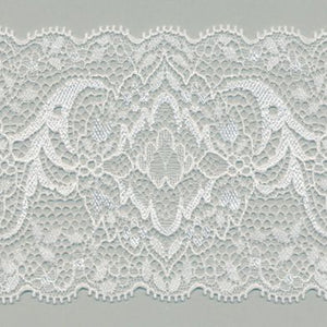 This is the Stretch Trimming Lace from SHINDO (S.I.C.). Lace with an elastic, dynamic pattern woven on a Russell loom, complex and delicate patterns, but also thin and flat. It is recommended for casual clothing, dance costumes, underwear, children's clothing, and interior accessories. In order to minimize shrinkage during washing and dyeing, all colors, including unbleached ones, have been treated to prevent shrinkage, so if you've ever had a lace sewn to a fabric that has shrunk after washing, don't worry. Three meter-cut products are sold as samples to check the actual product or for prototypes. Please be sure to check the actual product with a three meter-cut product before purchasing in a roll.