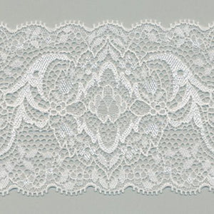 This is the Stretch Trimming Lace from SHINDO (S.I.C.). Lace with an elastic, dynamic pattern woven on a Russell loom, complex and delicate patterns, but also thin and flat. It is recommended for casual clothing, dance costumes, underwear, children's clothing, and interior accessories. In order to minimize shrinkage during washing and dyeing, all colors, including unbleached ones, have been treated to prevent shrinkage, so if you've ever had a lace sewn to a fabric that has shrunk after washing, don't worry. Three meter-cut products are sold as samples to check the actual product or for prototypes. Please be sure to check the actual product with a three meter-cut product before purchasing in a roll.
