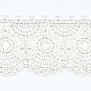 • This is the Embroidered Chemical Lace from SHINDO (S.I.C.). This is a modern patterned lace that is embroidered but has a translucent feel as if it were woven yarn. It is recommended for casual clothing, dance costumes, children's clothing, and interior accessories. In order to minimize shrinkage during washing and dyeing, all colors, including unbleached ones, have been treated to prevent shrinkage, so if you've ever had a lace sewn to a fabric that has shrunk after washing, don't worry. Three meter-cut products are sold as samples to check the actual product or for prototypes. Please be sure to check the actual product with a three meter-cut product before purchasing in a roll.
