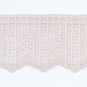 • This is the Embroidered Tulle Lace from SHINDO (S.I.C.). Combining knitted lace and embroidered lace, this plaid wavy line pattern lace has a beautiful harmony of light tulle knitting and fine embroidery. It is recommended for casual clothing, dance costumes, children's clothing, and interior accessories. In order to minimize shrinkage during washing and dyeing, all colors, including unbleached ones, have been treated to prevent shrinkage, so if you've ever had a lace sewn to a fabric that has shrunk after washing, don't worry. Three meter-cut products are sold as samples to check the actual product or for prototypes. Please be sure to check the actual product with a three meter-cut product before purchasing in a roll.