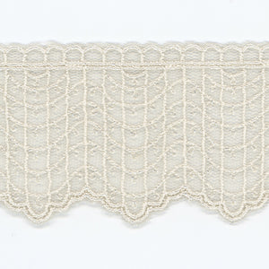 • This is the Embroidered Tulle Lace from SHINDO (S.I.C.). Combining knitted lace and embroidered lace, this plaid wavy line pattern lace has a beautiful harmony of light tulle knitting and fine embroidery. It is recommended for casual clothing, dance costumes, children's clothing, and interior accessories. In order to minimize shrinkage during washing and dyeing, all colors, including unbleached ones, have been treated to prevent shrinkage, so if you've ever had a lace sewn to a fabric that has shrunk after washing, don't worry. Three meter-cut products are sold as samples to check the actual product or for prototypes. Please be sure to check the actual product with a three meter-cut product before purchasing in a roll.