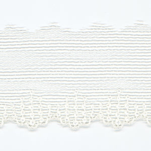 • This is the Embroidered Tulle Lace from SHINDO (S.I.C.). Combining knitted lace and embroidered lace, this dotted scalloped lace has a beautiful harmony between the light tulle weave and the fine embroidery. It is recommended for casual clothing, dance costumes, children's clothing, and interior accessories. In order to minimize shrinkage during washing and dyeing, all colors, including unbleached ones, have been treated to prevent shrinkage, so if you've ever had a lace sewn to a fabric that has shrunk after washing, don't worry. Three meter-cut products are sold as samples to check the actual product or for prototypes. Please be sure to check the actual product with a three meter-cut product before purchasing in a roll.
