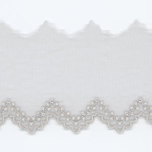 • This is the Embroidered Tulle Lace from SHINDO (S.I.C.). Combining knitted lace and embroidered lace, this dotted scalloped lace has a beautiful harmony between the light tulle weave and the fine embroidery. It is recommended for casual clothing, dance costumes, children's clothing, and interior accessories. In order to minimize shrinkage during washing and dyeing, all colors, including unbleached ones, have been treated to prevent shrinkage, so if you've ever had a lace sewn to a fabric that has shrunk after washing, don't worry. Three meter-cut products are sold as samples to check the actual product or for prototypes. Please be sure to check the actual product with a three meter-cut product before purchasing in a roll.