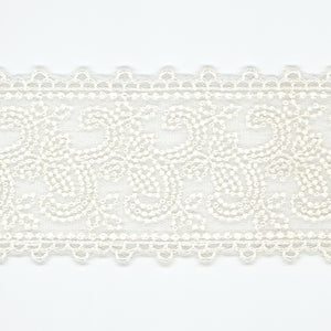 • This is the Embroidered Tulle Lace from SHINDO (S.I.C.). Combining braided lace and embroidered lace, this gorgeous patterned lace harmonizes with the light tulle weave and fine embroidery. It is recommended for casual clothing, dance costumes, children's clothing, and interior accessories. In order to minimize shrinkage during washing and dyeing, all colors, including unbleached ones, have been treated to prevent shrinkage, so if you've ever had a lace sewn to a fabric that has shrunk after washing, don't worry. Three meter-cut products are sold as samples to check the actual product or for prototypes. Please be sure to check the actual product with a three meter-cut product before purchasing in a roll.