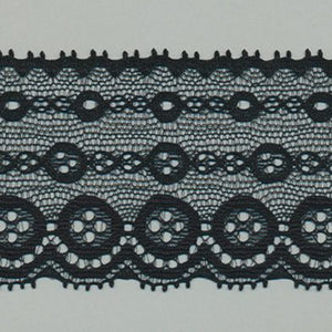 This is the Jacquard Trimming Lace from SHINDO (S.I.C.). A lace with a pattern of interlocking buttons woven on a Russell loom, characterized by a complex and delicate pattern but also thin and flat. It is recommended for casual clothing, dance costumes, underwear, children's clothing, and interior accessories. In order to minimize shrinkage during washing and dyeing, all colors, including unbleached ones, have been treated to prevent shrinkage, so if you've ever had a lace sewn to a fabric that has shrunk after washing, don't worry. Three meter-cut products are sold as samples to check the actual product or for prototypes. Please be sure to check the actual product with a three meter-cut product before purchasing in a roll.