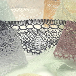 This is the Leavers Trimming Lace from SHINDO (S.I.C.). Characterized by its fine and detailed pattern and a wavy line on one side, leavers lace loom is a rare technique that requires a high level of technology to produce due to the large number of yarns used and the complex structure. It is recommended for women's clothing, dance costumes, interior design and other miscellaneous applications. In order to minimize shrinkage during washing and dyeing, all colors, including unbleached ones, have been treated to prevent shrinkage, so if you've ever had a lace sewn to a fabric that has shrunk after washing, don't worry. Three meter-cut products are sold as samples to check the actual product or for prototypes. Please be sure to check the actual product with a three meter-cut product before purchasing in a roll.