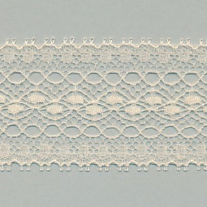 • This is the Leavers Trimming Lace from SHINDO (S.I.C.). Characterized by its fine and detailed ring line pattern, leavers lace loom is a rare technique that requires a high level of technology to produce due to the large number of yarns used and the complex structure. It is recommended for women's clothing, dance costumes, interior design and other miscellaneous applications. In order to minimize shrinkage during washing and dyeing, all colors, including unbleached ones, have been treated to prevent shrinkage, so if you've ever had a lace sewn to a fabric that has shrunk after washing, don't worry. Three meter-cut products are sold as samples to check the actual product or for prototypes. Please be sure to check the actual product with a three meter-cut product before purchasing in a roll.