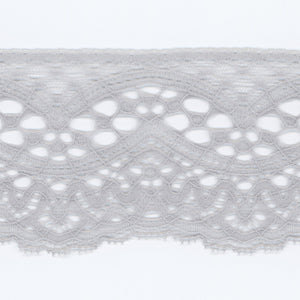 • This is the Leavers Trimming Lace from SHINDO (S.I.C.). Characterized by its random lace holes and dynamic patterns, leavers lace loom is a rare technique that requires a high level of technology to produce due to the large number of yarns used and the complex structure. It is recommended for women's clothing, dance costumes, interior design and other miscellaneous applications. In order to minimize shrinkage during washing and dyeing, all colors, including unbleached ones, have been treated to prevent shrinkage, so if you've ever had a lace sewn to a fabric that has shrunk after washing, don't worry.Three meter-cut products are sold as samples to check the actual product or for prototypes. Please be sure to check the actual product with a three meter-cut product before purchasing in a roll.