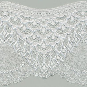 • This is the Leavers Trimming Lace from SHINDO (S.I.C.). It is characterized by its fine, detailed pattern and peacock-feather-like design. Leavers lace looms use a large number of yarns and have a complicated structure, so it is a rare lace that requires high technical skills to produce. It is recommended for ladies' wear, dance costumes, and miscellaneous goods such as interior decorations. In order to minimize shrinkage during dyeing and washing, all colors, including the raw silk, are shrink-proofed. (T_T). Three meter-cut products are sold as samples to check the actual product or for prototypes. Please be sure to check the actual product with a three meter-cut product before purchasing in a roll.