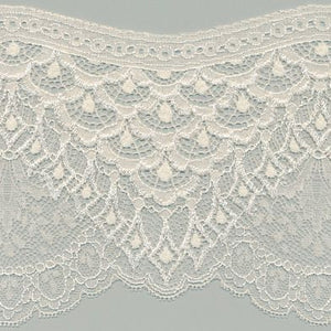 This is the Leavers Trimming Lace from SHINDO (S.I.C.). It is characterized by its fine, detailed pattern and peacock-feather-like design. Leavers lace looms use a large number of yarns and have a complicated structure, so it is a rare lace that requires high technical skills to produce. It is recommended for ladies' wear, dance costumes, and miscellaneous goods such as interior decorations. In order to minimize shrinkage during dyeing and washing, all colors, including the raw silk, are shrink-proofed. (T_T). Three meter-cut products are sold as samples to check the actual product or for prototypes. Please be sure to check the actual product with a three meter-cut product before purchasing in a roll.