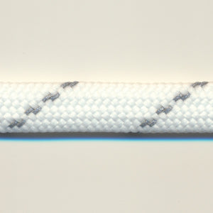 This is the Reflect Cord (flat cord) from SHINDO (S.I.C.). This item is a tubular flat cord made of superfine slit thread of Scotchlite reflective material manufactured by 3M and braided into a tubular cord, which has a solid luminance and improves visibility and safety at night. The silver reflective material is accented with an accent design, making it suitable not only for outdoor activities and sports, but also for children's clothing and working wear, and it is also recommended for backpacks and shoe laces. Three meter-cut products are sold as samples to check the actual product or for prototypes. Please be sure to check the actual product with a three meter-cut product before purchasing in a roll.