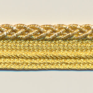 This is the Metallic Piping from SHINDO (S.I.C.). This is a high-grade, elegant cord piping with gold and silver lame on the heads and crossed out in a highly designed, elegant and shiny design. This tape is recommended for trimming and decorating the edges of stage costumes and dresses because of its presence and glamour. Three meter-cut products are sold as samples to check the actual product or for prototypes. Please be sure to check the actual product with a three meter-cut product before purchasing in a roll.