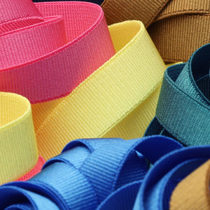 • This is the Recycled Polyester Grosgrain Stretch Tape from SHINDO (S.I.C.). This stretch grosgrain tape is made from environmentally conscious recycled polyester yarn (virgin) to help realize a sustainable society. It features a flat weave with a horizontal wave pattern and an exceptional luster. Made in Japan, it boasts high elastic durability for long-lasting, reliable use. The tape type is recommended for shoulder straps on innerwear and camisoles, while the binder type is ideal for edging fabric edges. Note: 9x9mm and 12x12mm sizes are binder type (the tape has a folded edge in the center of the tape that can be easily inserted into the edge of fabric such as sleeves and hems, and sewn easily and neatly as an edge trimming tape). Three meter-cut products are sold as samples to check the actual product or for prototypes. Please be sure to check the actual product with a three meter-cut product before purchasing in a roll.