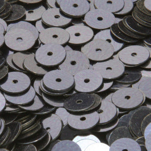 This is a flat round French luxury spangle with a 3 tone metallic gradation (hole in the center). They are not dry-cleanable, but are inexpensive and have a solid thickness; available in a total of 72 colors (including transparent and opaque types), although they are only available in 6mm size. Some color difference may occur depending on the dyeing lot. Sequins are packed loose.