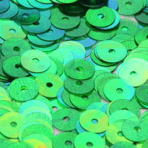 This is a washable (dry-cleaning petroleum-based) flat round spangle (hole in the center). It comes in a variety of sizes, so you can make a gradation of sizes in the same color. Sequins are packed loose.