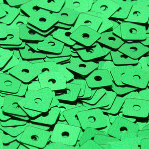 This is a washable (dry-cleaning petroleum-based) flat square spangle (hole in the center). It comes in a variety of sizes, so you can make a gradation of sizes in the same color. Sequins are packed loose.