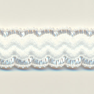 This is the Lace Frill Stretch Tape from SHINDO (S.I.C.). This elastic ruffled tape has a soft texture and feels good against the skin. This material is recommended for ladies' and kids' innerwear and homeware applications. Three meter-cut products are sold as samples to check the actual product or for prototypes. Please be sure to check the actual product with a three meter-cut product before purchasing in a roll.