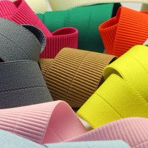 This is the Stretch Tape Reversible from SHINDO (S.I.C.). This is a reversible type elastic tape (binder) with a different expression on each side. It is a material designed for fleece and stretch-fabric sweatshirts that require stretch in thick outerwear. It is also popular for use as a single piece (with 10mm tape) for shoulder straps, etc. Note: 10x10mm, 15x15mm, and 20x20mm sizes are binder type (the tape is folded in the center of the tape and can be easily inserted at the edge of fabrics such as sleeves and hems, and sewn easily and neatly as an edge trimming tape). Three meter-cut products are sold as samples to check the actual product or for prototypes. Please be sure to check the actual product with a three meter-cut product before purchasing in a roll.