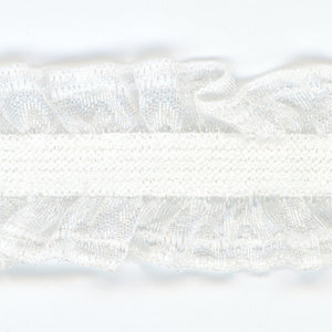 This is the Double Frill Stretch from SHINDO (S.I.C.). This is an elastic tape with two lines on the edge of a sheer organdy ruffle, with ruffled ends that emphasize the ruffle lines more. It has the luster and lightness that only nylon materials can offer, and is compatible with thin body fabrics. It is recommended for use in casual clothing and general merchandise. Three meter-cut products are sold as samples to check the actual product or for prototypes. Please be sure to check the actual product with a three meter-cut product before purchasing in a roll.