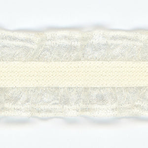 This is the Double Frill Stretch from SHINDO (S.I.C.). This is an elastic tape with two lines on the edge of a sheer organdy ruffle, with ruffled ends that emphasize the ruffle lines more. It has the luster and lightness that only nylon materials can offer, and is compatible with thin body fabrics. It is recommended for use in casual clothing and general merchandise. Three meter-cut products are sold as samples to check the actual product or for prototypes. Please be sure to check the actual product with a three meter-cut product before purchasing in a roll.