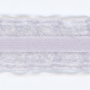 This is the Double Frill Stretch from SHINDO (S.I.C.). This is an elastic tape with two lines on the edge of a sheer organdy ruffle, with ruffled ends that emphasize the ruffle lines more. It has the luster and lightness that only nylon materials can offer, and is compatible with thin body fabrics. It is recommended for use in casual clothing and general merchandise. Three meter-cut products are sold as samples to check the actual product or for prototypes. Please be sure to check the actual product with a three meter-cut product before purchasing in a roll.
