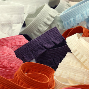 This is the Frill Stretch from SHINDO (S.I.C.). Elastic frill tape with a soft and gentle knit structure, loosely knitted with thick yarn. Recommended for casual wear, sportswear, children's wear, and general merchandise. Three meter-cut products are sold as samples to check the actual product or for prototypes. Please be sure to check the actual product with a three meter-cut product before purchasing in a roll.