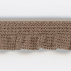 This is the Frill Stretch from SHINDO (S.I.C.). Elastic frill tape with a soft and gentle knit structure, loosely knitted with thick yarn. Recommended for casual wear, sportswear, children's wear, and general merchandise. Three meter-cut products are sold as samples to check the actual product or for prototypes. Please be sure to check the actual product with a three meter-cut product before purchasing in a roll.