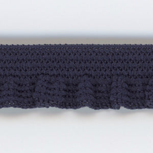 This is the Frill Stretch from SHINDO (S.I.C.). Elastic frill tape with a soft and gentle knit structure, loosely knitted with thick yarn. Recommended for casual wear, sportswear, children's wear, and general merchandise. Three meter-cut products are sold as samples to check the actual product or for prototypes. Please be sure to check the actual product with a three meter-cut product before purchasing in a roll.