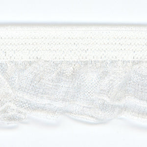 This is the Layered Frill Stretch from SHINDO (S.I.C.). It is an elastic frill tape made of sheer organdy layered in two layers of different lengths, and it has a luster and lightness that only nylon material can provide, and it goes well with thin body fabrics. It is recommended for use in casual clothing and general merchandise. Three meter-cut products are sold as samples to check the actual product or for prototypes. Please be sure to check the actual product with a three meter-cut product before purchasing in a roll.