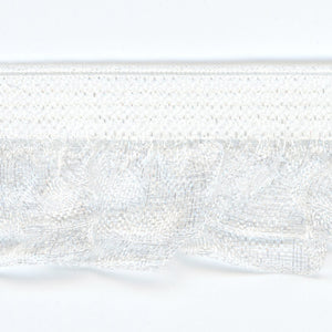 This is the Layered Frill Stretch from SHINDO (S.I.C.). It is an elastic frill tape made of sheer organdy layered in two layers of different lengths, and it has a luster and lightness that only nylon material can provide, and it goes well with thin body fabrics. It is recommended for use in casual clothing and general merchandise. Three meter-cut products are sold as samples to check the actual product or for prototypes. Please be sure to check the actual product with a three meter-cut product before purchasing in a roll.